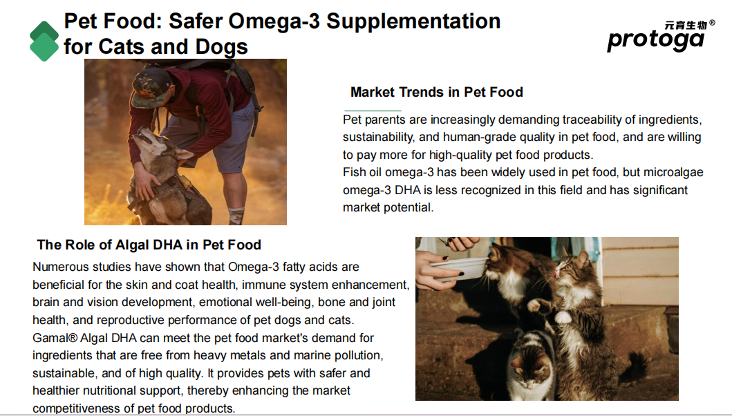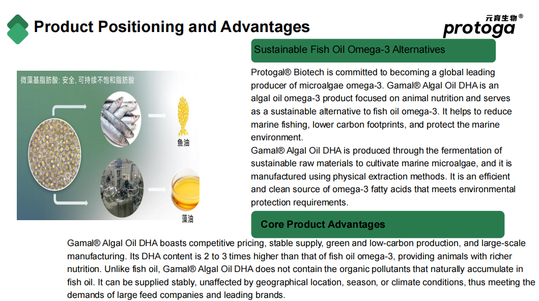Gamal® Algal DHA is a high-quality, high-content vegan source of Omega-3 (DHA), which is a key component in animal feed. Through Gamal® Algal DHA, we help maintain or increase the levels of Omega-3 in healthy diets, reduce the dependence on fish oil in feed, and protect the environment.